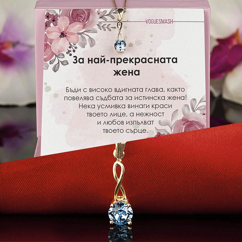 Автентично сребърно колие със син циркон „Безкрайност“ и 18 каратово злато.